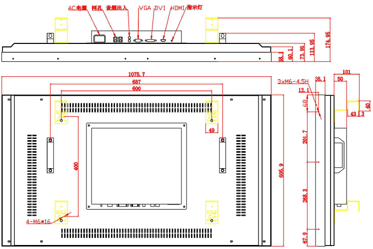 HDMI/DVI/VGA/AV/RS232/ 電源接口 |